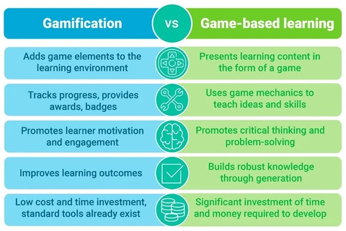 Game-based learning involves using educational games as a central component of the learning experience, where gameplay drives the learning process. In contrast, gamification involves integrating game elements, such as rewards and badges, into non-game contexts to increase engagement. - Is game-based learning suitable for all age groups?